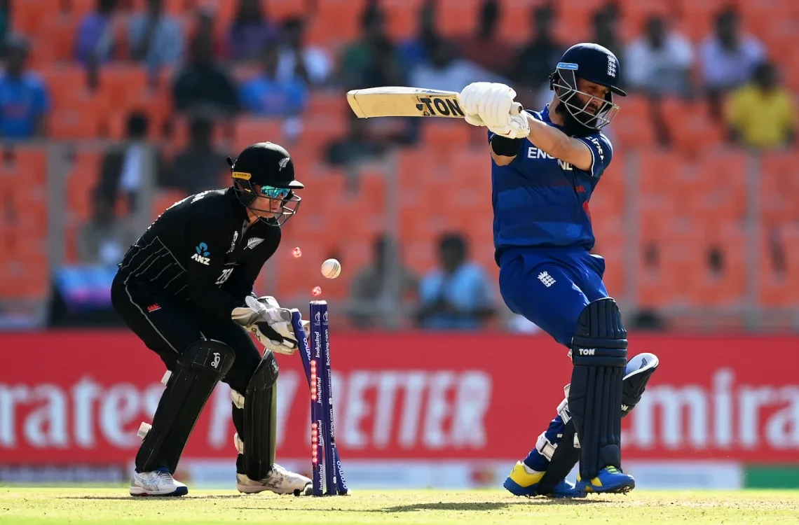 এবারের বিশ্বকাপেও দুই ফেভারিট দল ইংল্যান্ড ও নিউজিল্যান্ড। তবে ক্রিকেট বোদ্ধাদের অনেকেই ইংল্যান্ডকে ফাইনালিস্ট হিসেবে দেখছে। আহমেদাবাদের নরেন্দ্র মোদি স্টেডিয়ামে টস জিতে প্রথমে ফিল্ডিং করার সিদ্ধান্ত নেয় নিউজিল্যান্ড। জনি বেয়ারেস্ট ও ডেভিড মালানের উদ্বোধনী জটিতে ৪০ রান আসলেও শুরুর দিকে চাপে পড়ে গিয়েছিল ইংল্যান্ড। ১১৮ রানের ৪ উইকেট হারায় ইংলিশরা। উদ্বোধনী ব্যাটসম্যান ডেভিড মালান ১৪ ও জনি বেয়ারেস্ট ৩৩ রান করেন। হ্যারি ব্রুক মারমুখী মেজাজে থাকলেও ১৬ বলে ২৫ রান করে ফিরে গেছেন। এরপর মঈন আলী আউট হয়েছেন ১১ রান করে।