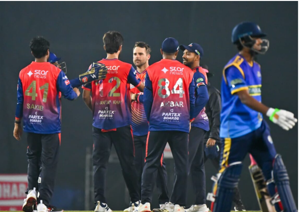 চট্টগ্রাম রয়্যালস ১৯.৫ ওভারে মাত্র ১২৫ রানেই গুটিয়ে যায়। আসিফ আলি ২৪ বলে ৪ ছক্কায় দলের হয়ে সর্বোচ্চ ৩৯ রান করেন। তানজিম হাসান সাকিব ৪ ওভারে ১ মেডেনে ১৭ রান দিয়ে ৪টি উইকেট নেন। এটি তার স্বীকৃত টি-টোয়েন্টি ক্যারিয়ারে দ্বিতীয়বার ৪ উইকেট শিকার।