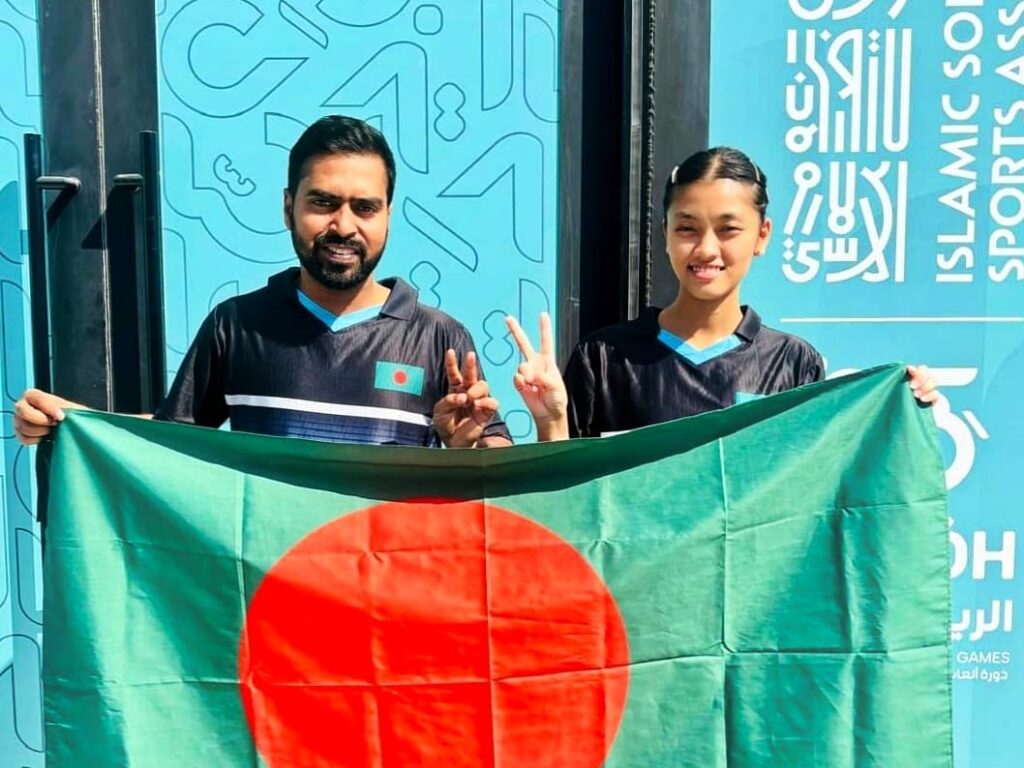 বাংলাদেশ টেবিল টেনিস ইতিহাসে আজ (বৃহস্পতিবার) একটি গৌরবময় দিন। সৌদি আরবের রাজধানী রিয়াদে অনুষ্ঠিত ৬ষ্ঠ ইসলামিক সলিডেরাটি গেমস এর মিশ্র দ্বৈতের ফাইনালে ওঠেন বাংলাদেশের মোঃ জাভেদ আহমেদ-খই খই সাই মারমা জুটি। কিন্তু ফাইনালে শক্তিশালী তুরস্কের সাথে লড়াই করে ৫-১১, ৮-১১, ৬-১১ পয়েন্টে ০-৩ গেমের ব্যবধানে পরাজিত হন তারা। তবে গৌরবময় সাফল্য হিসেবে রৌপ্য পদক অর্জন করেন তারা। স্বর্ণ বিজয়ী তুরস্কের হয়ে খেলায় অংশগ্রহণ করেন মহিলাদের ওয়ার্ল্ড র্যাঙ্কিং হলো ৮০তম খেরোয়াড় সিবেল আলতিনকায়া এবং পুরুষদের ওয়ার্ল্ড র্যাঙ্কিংয়ে ২৬২তম খেলোয়াড় ইব্রাহিম গুনডুজ। বিপরীতে বাংলাদেশের মিশ্র জুটির কারও আন্তর্জাতিক রেটিং নেই।