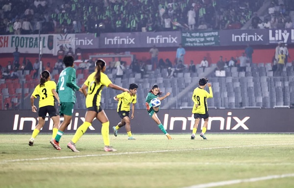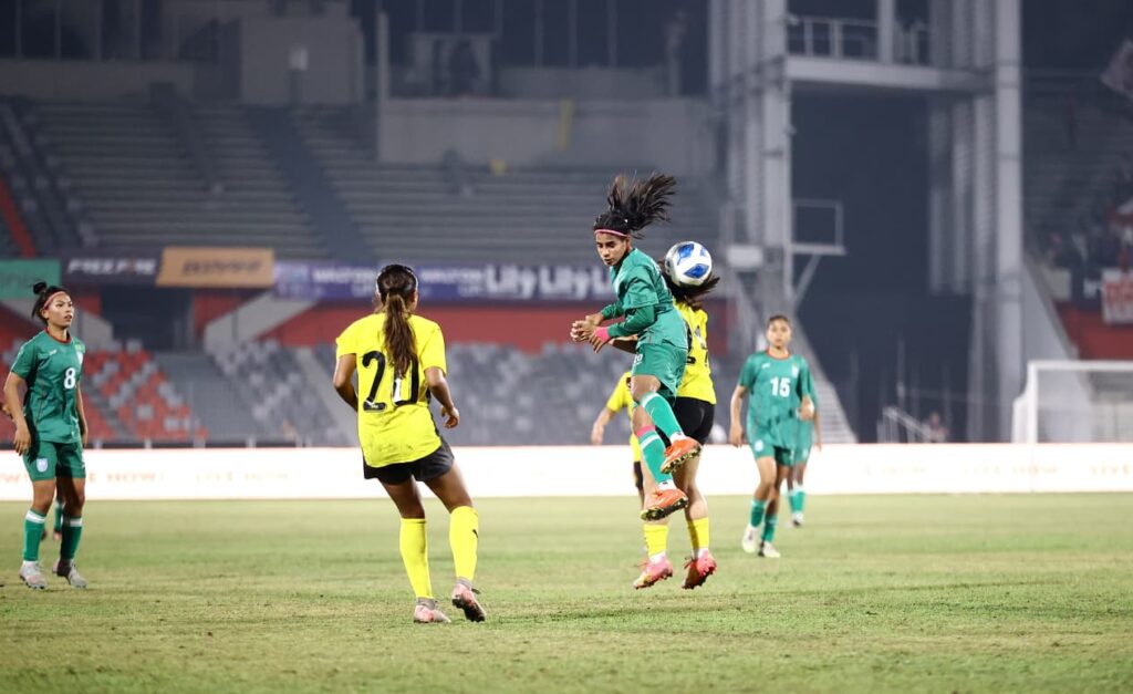 মালয়েশিয়া যদিও র্যাঙ্কিংয়ে এগিয়ে, এরপরও জাতীয় স্টেডিয়ামে ১৩ বছর পর প্রথম ম্যাচ খেলতে নামা বাংলাদেশের মেয়েরা ছিল উজ্জীবিত। প্রথম থেকেই বেশ চাপে রাখতে পেরেছেন তারা মালয়েশিয়ার মেয়েদের। তবে নিজেদের ভুলেই গোল হজম করতে হয়েছে।