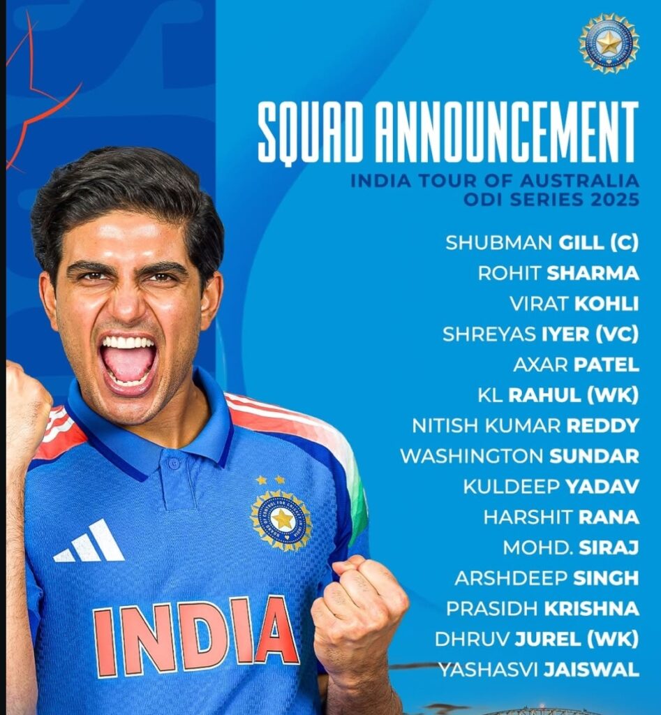 চলতি মাসে অস্ট্রেলিয়ার মাটিতে ওয়ানডে ও টি–টোয়েন্টি সিরিজ খেলবে ভারত। আগামী ১৯ অক্টোবর পার্থে প্রথম ওয়ানডে দিয়ে শুরু হবে সিরিজ। এই সফরকে সামনে রেখে শনিবার স্কোয়াড ঘোষণা করেছে বিসিসিআই। দীর্ঘদিন পর জাতীয় দলে ফিরেছেন রোহিত শর্মা ও বিরাট কোহলি। তবে ওয়ানডেতে আর নেতৃত্ব থাকবে না রোহিতের হাতে। টেস্টের পর এবার ওয়ানডে দলের অধিনায়কত্বও উঠেছে শুভমান গিলের কাঁধে।
