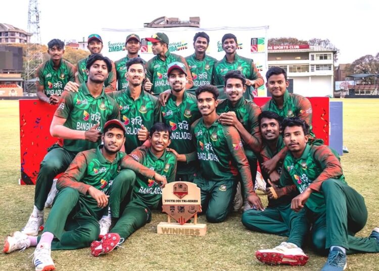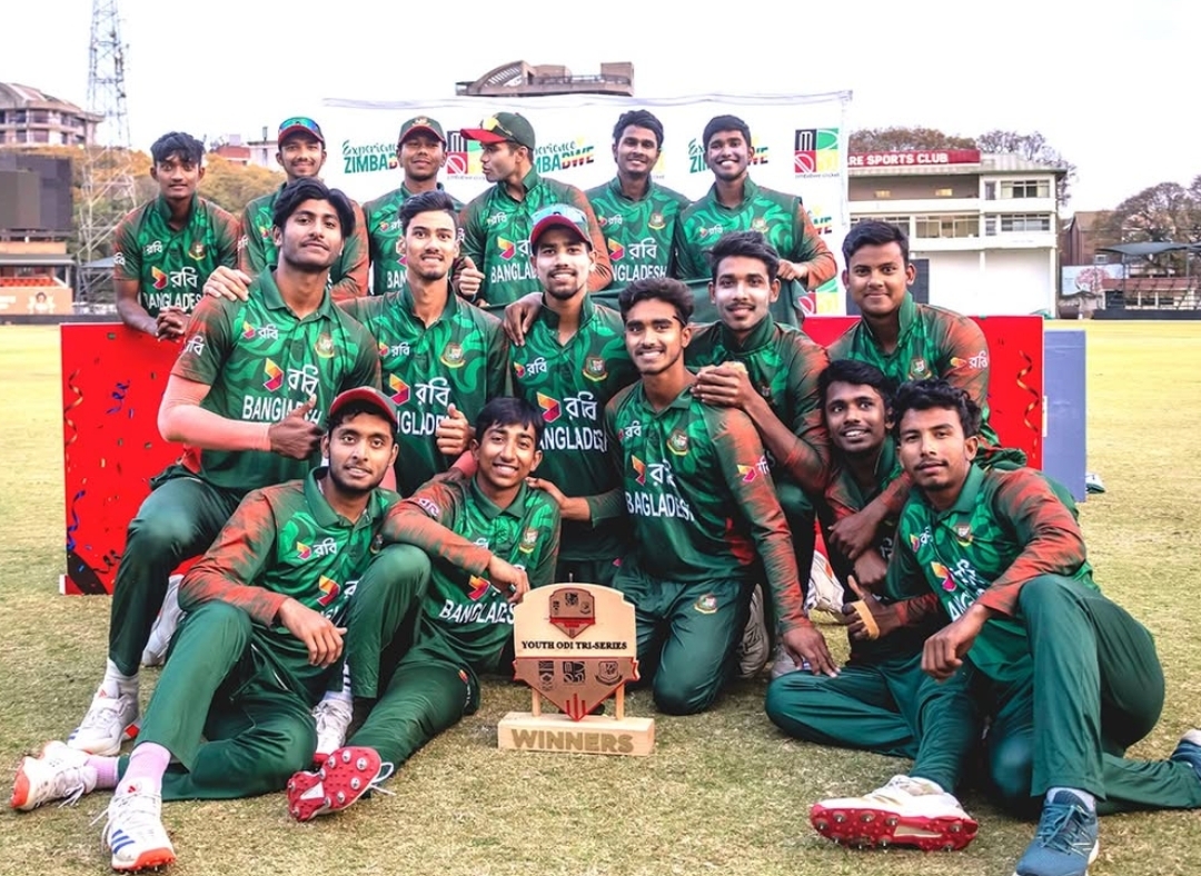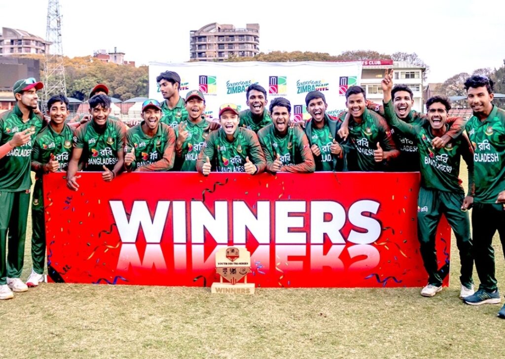 মাত্র কিছুদিন আগেই দক্ষিণ আফ্রিকার মাটিতে যুব সিরিজে সাফল্যের স্বাদ পেয়েছিল বাংলাদেশ অনূর্ধ্ব–১৯ ক্রিকেট দল। সেই জয়ের ধারা জিম্বাবুয়েতে ত্রিদেশীয় সিরিজের ফাইনালেও বজায় রাখল তারা। শিরোপা নির্ধারণী ম্যাচে স্বাগতিক দক্ষিণ আফ্রিকাকে ৩৩ রানে হারিয়ে ট্রফি হাতে তোলে আজিজুল হাকিম তামিমের নেতৃত্বাধীন দল।