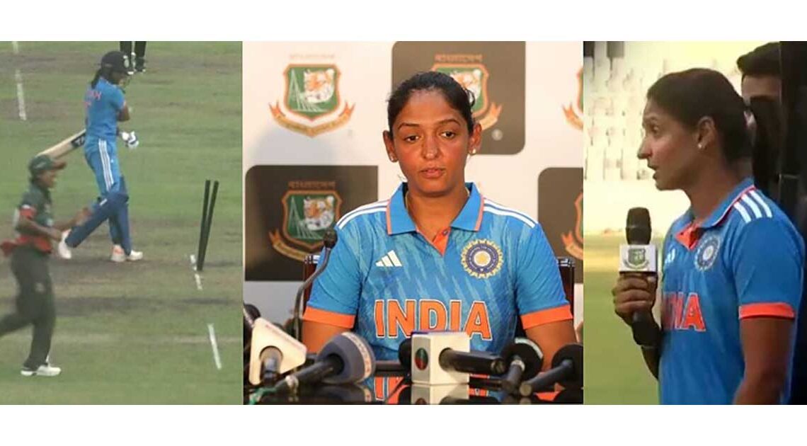 গত ২২ জুলাই মিরপুর শের-ই-বাংলা ক্রিকেট স্টেডিয়ামে, অনুষ্ঠিত ওডিআই সিরিজ নির্ধারণী ম্যাচে ভারতীয় নারী দলের অধিনায়ক হারমানপ্রিত খেলার ৩৪তম ওভারে নাহিদা আক্তারের বলে সুইপ করতে গিয়ে স্লিপে ক্যাপ দেন। কিন্তু আম্পায়ার তানভিরের দেয়া আউটের সিদ্ধান্ত মানতে না পেরে ব্যাটের আঘাতে স্ট্যাম্প ভাঙেন। এখানেই থেমে থামেননি বিশ্ব ক্রিকেটের পরিচিত এই মুখ। মাঠে বাজে আচরণ করেই থেমে থাকেননি তিনি। পুরস্কারবিতরণী মঞ্চে আম্পারিং নিয়ে প্রকাশ্য সমালোচনা করেন। পাশাপাশি এও বলেন, ভবিষ্যতে বাংলাদেশে খেলতে এলে আম্পারিংয়ের বিষয়টি মাথায় রেখেই খেলতে আসবেন বলে জানান তিনি। এর আগে অনুষ্ঠান সঞ্চালনার সময় সারাক্ষণই সতীর্থ খেলোয়াড়দের সাথে হাসিঠাট্টায় মেতে ছিলেন।