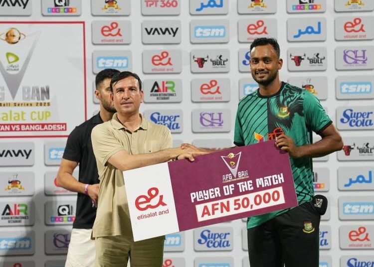 আফগানিস্তানের বিপক্ষে দ্বিতীয় টি-টোয়েন্টিতে নায়ক হয়ে উঠলেন শরিফুল ইসলাম। বল হাতে নিয়ন্ত্রিত স্পেল, পরে ব্যাট হাতে গুরুত্বপূর্ণ ইনিংস—দুয়েই অবদান রেখেছেন তিনি। এই পারফরম্যান্সে ম্যাচসেরা নির্বাচিত হওয়ার পর বড় একটি ঘোষণা দিয়ে আলোচনায় এলেন বাংলাদেশের তরুণ পেসার।