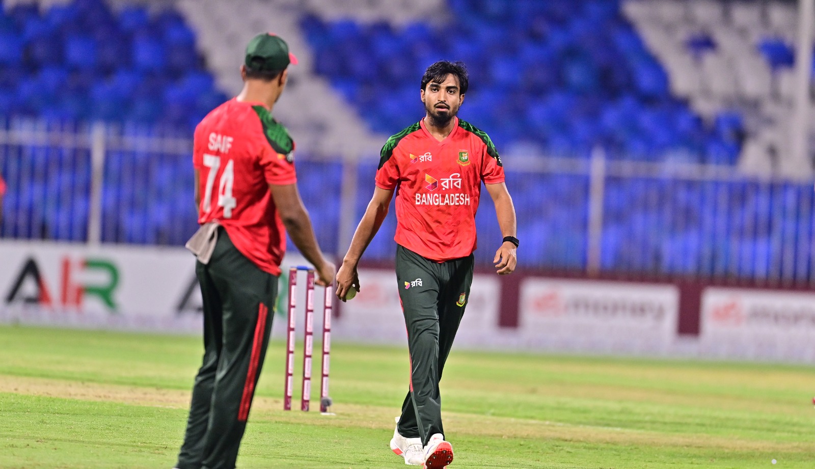 নিজের প্রথম ওভারে ১৬ রান দিলেও দ্বিতীয় ওভারে দারুণভাবে ঘুরে দাঁড়ান রিশাদ হোসেন। ফেরালেন আজমতউল্লাহ ওমরজাইকে। রিশাদের টার্ন করা বলে ওমরজাই ছক্কা মারার ঝুঁকি নিয়েছিলেন। কিন্তু বল ব্যালের কিনারায় লেগে গেল নুরুল হাসানের হাতে ক্যাচ দেওয়ার আগে ৬ বলে ৩ রান করেন। এরপর ব্যাটিংয়ে নেমে মোহাম্মদ নবীও টিকতে পারেনি। নাসুম আহমেদের বলে বোল্ড ৪ বলে ১ রান করে।