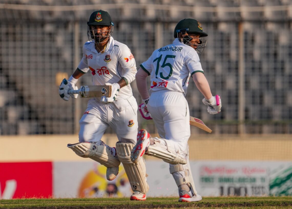 আগের দিন শেষে সাদমান ইসলাম ৬৯ রান নিয়ে ব্যাটিংয়ে নেমে দিনের শুরুতেই ৭৮ রান করে আউট হন। এরপর ব্যাটিংয়ে নেমে মাত্র ১ রানে বিদায় নেন নাজমুল হোসেন শান্ত। তবে মুমিনুল হক ১৯ রান নিয়ে এগিয়ে যাচ্ছেন। তাকে সঙ্গ দিচ্ছেন শততম টেস্ট খেলতে নামা মুশফিকুর রহিম।