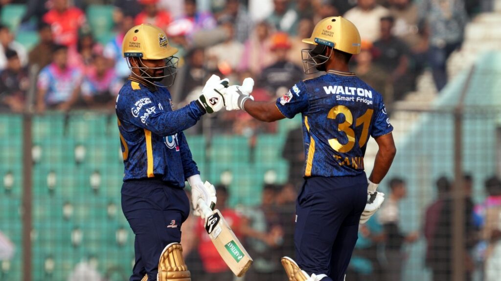 চিটাগং কিংসের দেয়া ১৪৯ রানের লক্ষ্যে ব্যাটিংয়ে নেমে দারুণ শুরু করে ঢাকার দুই ওপেনার তানজিদ হাসান তামিম ও লিটন তাস। ভালো শুরুর পর লিটন দলীয় ৭৫ রানের মাথায় ব্যক্তিগত ২৫ রান করে বিদায় নেন। এরপর মুনিম শাহরিয়ার ওয়ানডাউনে ব্যাটিংয়ে নেমে ১২ রান করে ফেরেন।