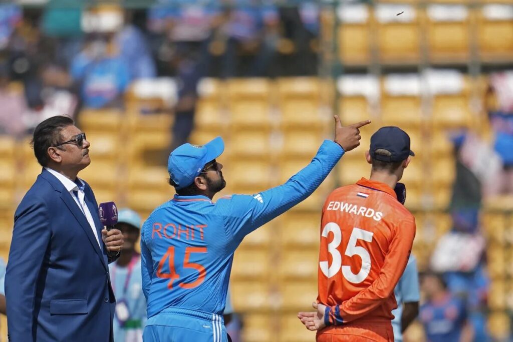 বিশ্বকাপে প্রথম পর্বের শেষ ম্যাচে স্বাগতিক ভারতের মুখোমুখি হয়েছে নেদারল্যান্ডস। বেঙ্গালুরুর চিন্নাস্বামী স্টেডিয়ামে টস জিতে ব্যাটিংয়ের সিদ্ধান্ত নিয়েছেন ভারতীয় অধিনায়ক রোহিত শর্মা। আজ দুই দলই অপরিবর্তিত একাদশ নিয়ে মাঠে নেমেছে।
