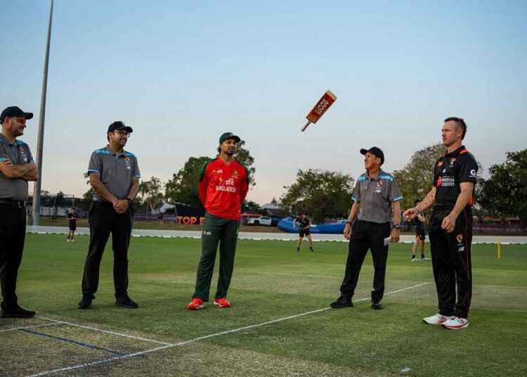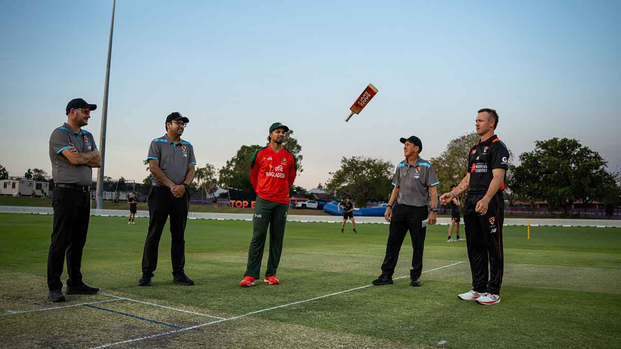 ডারউইনের মারারা ক্রিকেট গ্রাউন্ডে আজ টস ভাগ্য সহায় হলো না নুরুল হাসান সোহানের। আগের দুই ম্যাচে টস জিতলেও তৃতীয় ম্যাচে ব্যাট ফ্লিপে হেরে যান বাংলাদেশ ‘এ’ দলের অধিনায়ক। টসে জিতে নর্দার্ন টেরিটরি স্ট্রাইক বেছে নেয় ফিল্ডিং। ফলে ব্যাটিং করতে নামতে হয়েছে বাংলাদেশ এ দলকে