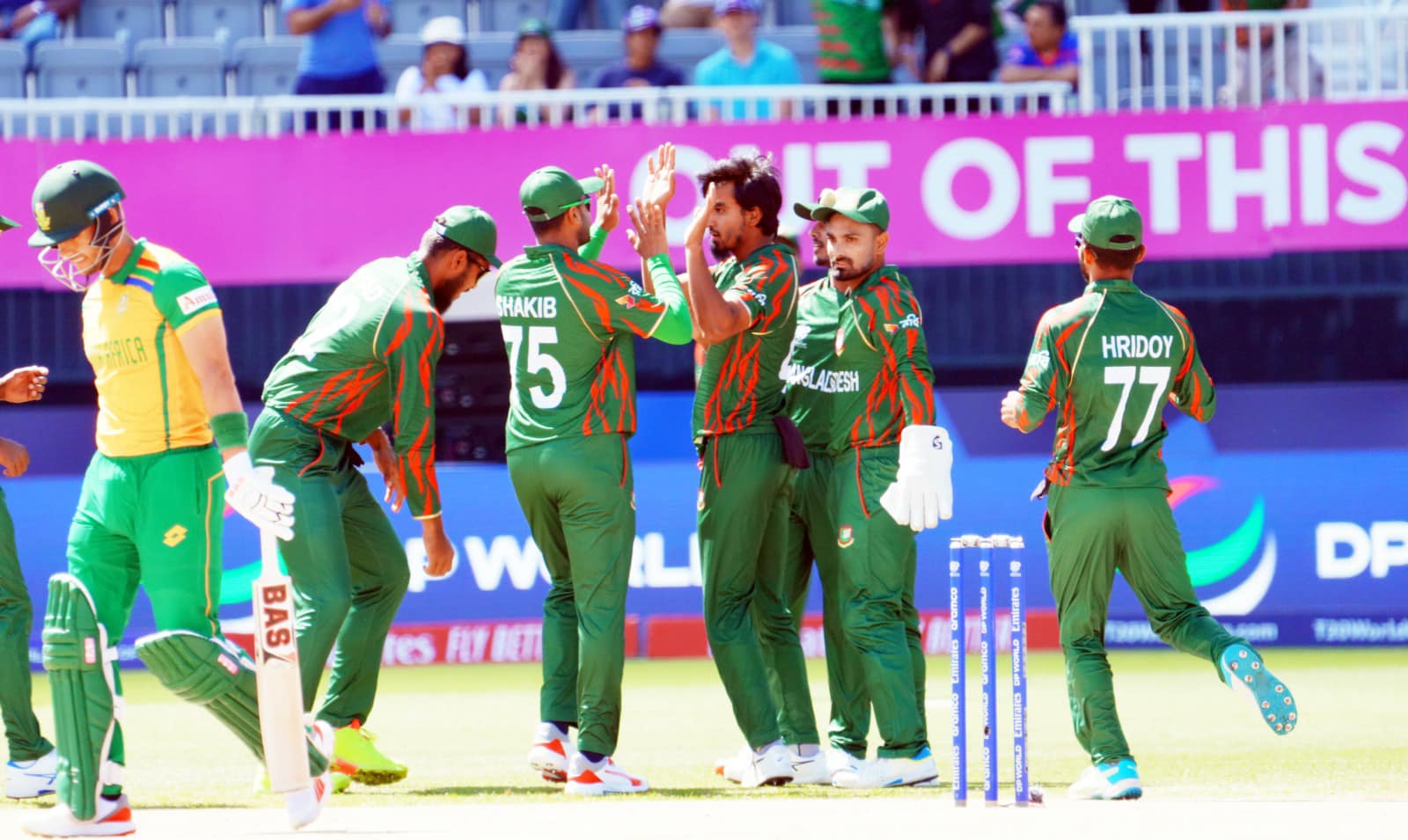 প্রথম স্পেলে টানা তিন ওভার বল করা তানজিম সাকিব প্রতি ওভারেই একটি করে উইকেট তুলে নিয়েছেন। আউট করেছেন হেনড্রিক্স, কুইন্টন ডি কক ও ট্রিস্টান স্ট্রাবসকে।