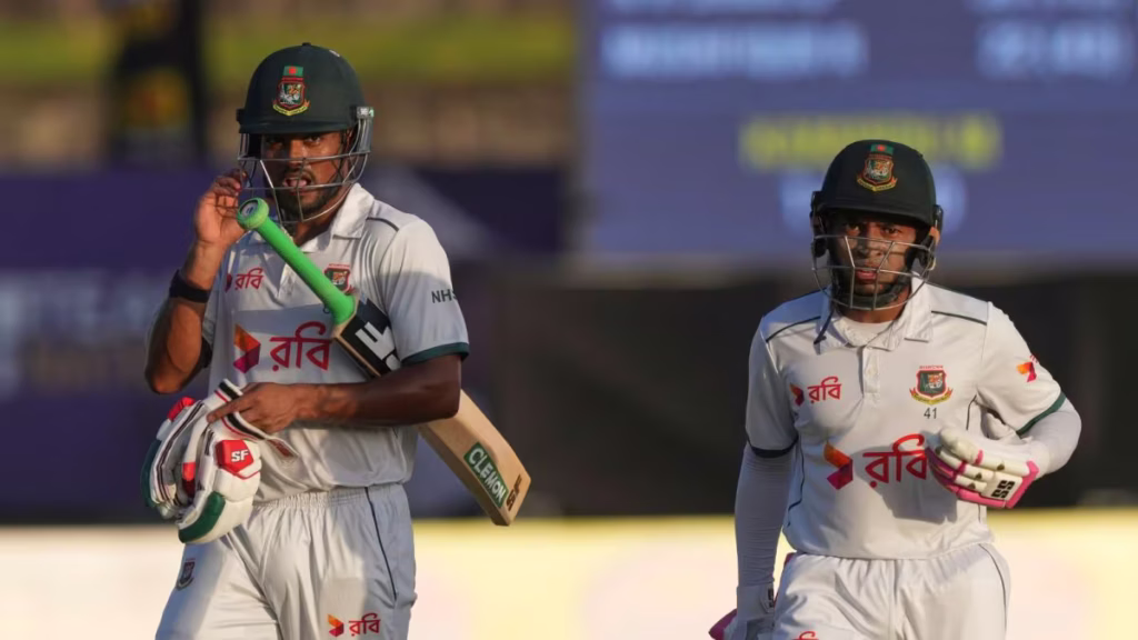 প্রথম ইনিংসের দুই সেঞ্চুরিয়ান অধিনায়ক নাজমুল হোসেন শান্ত ৫৬ ও মুশফিকুর রহিম ২২ রানে অপরাজিত আছেন। শান্ত প্রথম ইনিংসে ১৪৮ ও মুশফিক ১৬৩ রান করেছিলেন।