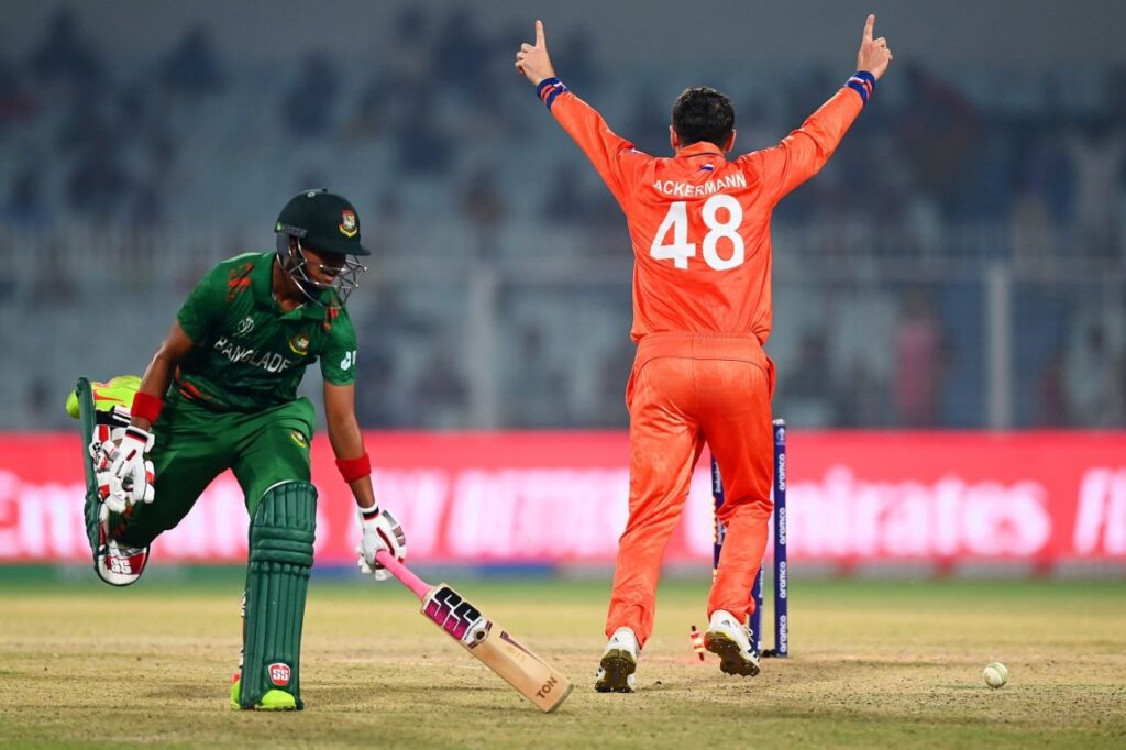 ৪১ রান করেন বারেসি। দলীয় ৬৩ রানে ওয়েসলি বারেসির পর আউট হয়েছেন কলিন অ্যাকারম্যানও। তাকে আউট করেন সাকিব আল হাসান। দলীয় ১০৭ রানে বাস ডি লিডি আউট হলে পঞ্চম উইকেট হারায় নেদারল্যান্ডস। ম্যাচে তাসকিনের দ্বিতীয় শিকার হয়েছেন বাস ডি লিডি।