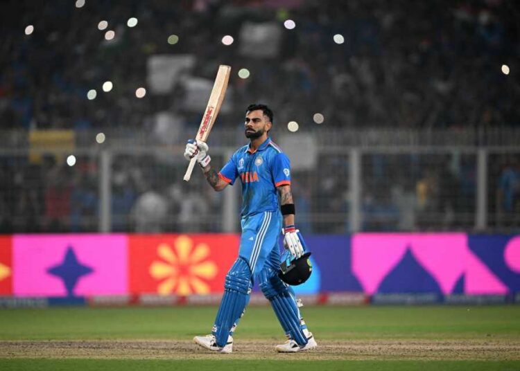 ম্যাচের ৫.৫ ওভারে দলীয় ৬২ রানে ওপেনার রোহিত শর্মার ৪০ রানের ইনিংস থামলে মাঠে নামেন ভারতের ক্রিকেটের পোস্টার বয় বিরাট কোহলি। এরপর দলীয় ৯৩ রানে আরেক ওপেনার শুবমান গিল সাজঘরে ফিরলে শ্রেয়াস আইয়ারকে নিয়ে দক্ষিণ আফ্রিকার বিপক্ষে চলতি বিশ্বকাপে ১৩৪ রানের সর্বোচ্চ রানের পার্টনারশিপ গড়েন কোহলি। ৮৭ বলে ৭৭ রান করে শ্রেয়াস আউট হলেও ম্যাচের নিয়ন্ত্রণ নিজের কাছেই রেখেছেন বার্থডে বয়। করেছেন ওয়ানডেতে ক্যারিয়ারের ৪৯তম সেঞ্চুরি। এছাড়াও এটি চলতি বিশ্বকাপে তার দ্বিতীয় সেঞ্চুরি।