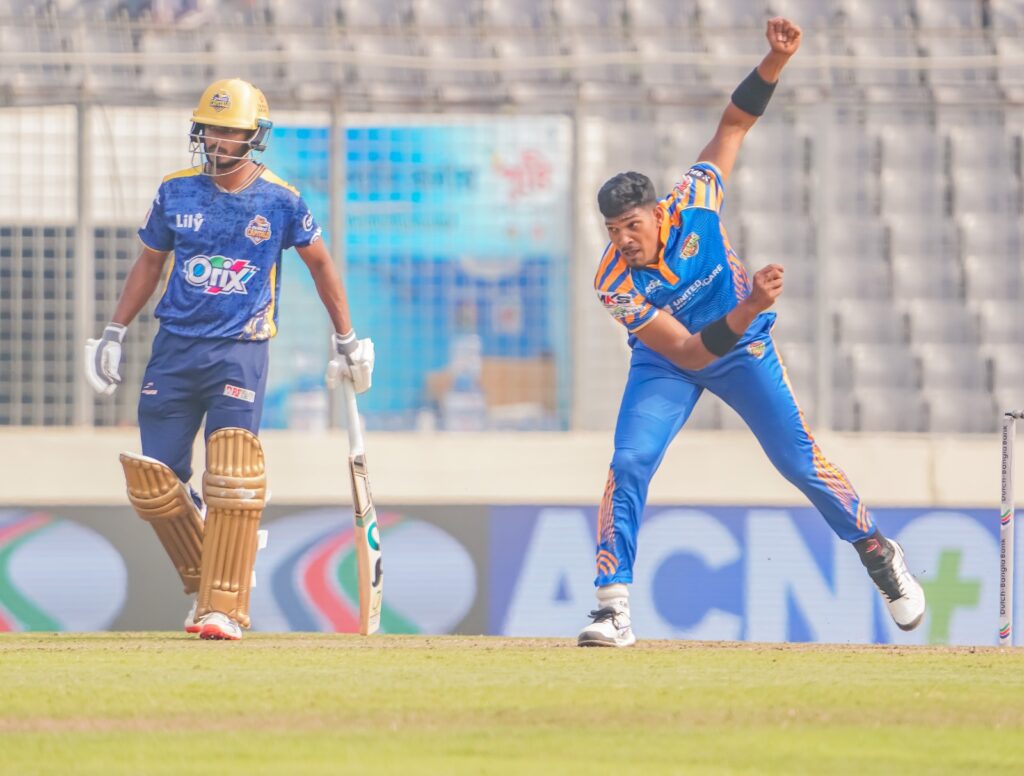 খুলনার পক্ষে হাসান মাহমুদ চার ওভার বল করে মাত্র ৫ রান দিয়ে দুই উইকেট তুলে নিয়েছেন। উইলিয়াম বোসিসতো চার ওভার বোলিংয়ে ১০ রান দিয়ে দুই উইকেট পেয়েছেন। এছাড়া একটি করে উইকেট তুলে নিয়েছেন নাসুম আহমেদ, মেহেদে মিরাজ, মুশফিক হাসান, জিয়াউর রহমান ও মোহাম্মদ নেওয়াজ।