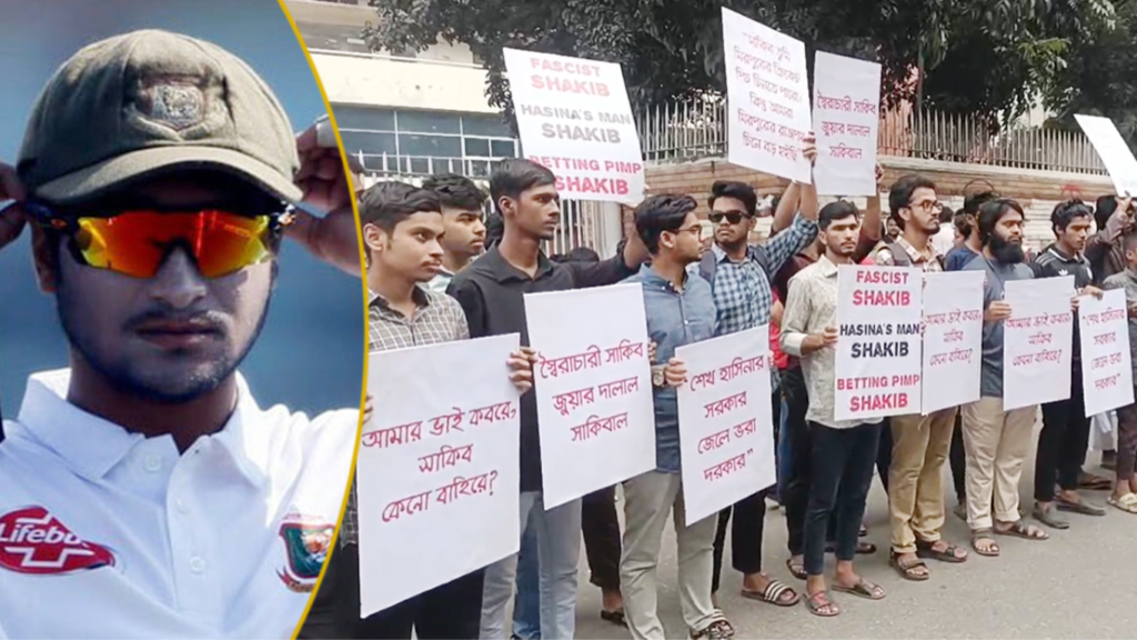 বিক্ষোভকারীরা সাকিবের বিরুদ্ধে ক্ষোভ প্রকাশ করে বলেন, তিনি দুর্নীতি ও জুয়ার সাথে যুক্ত, তাই তাকে জাতীয় দলে খেলার সুযোগ দেওয়া উচিত নয়। এর ফলে যদি কোনো আন্তর্জাতিক সমস্যা তৈরি হয়, তাহলে বিসিবি সভাপতিকেই তার দায়ভার নিতে হবে।