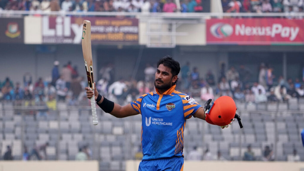 শেষ পর্যন্ত ৬২ বলে ১১১ রান করে অপরাজিত ছিলেন নাইম। আর শেষদিকে উইকেটে সঙ্গে দুর্দান্ত ক্যামিও খেলেছেন মাহিদুল ইসলাম অঙ্কন। ইনফর্ম এই ব্যাটার ১৫ বলে করেছেন ২৯ রান।