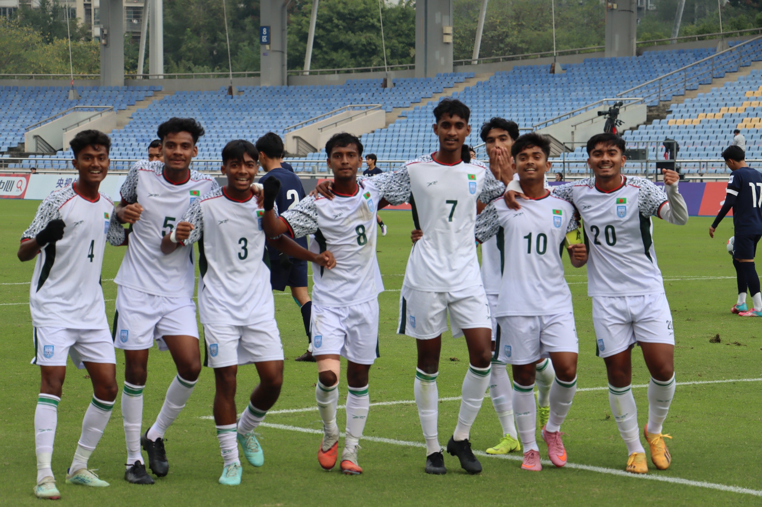 বাংলাদেশ দলের পক্ষে জোড়া গোল করেছেন রিফাত কাজী। একটি করে গোল করেছেন অপু, ফয়সাল, মানিক, অপু, আলিফ ও বায়েজিত।