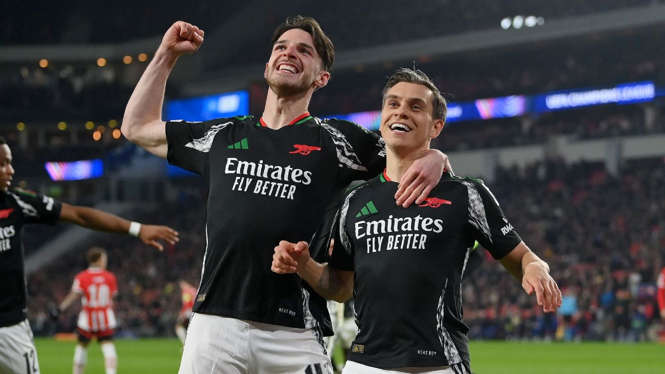উয়েফা চ্যাম্পিয়ন্স লিগে রাউন্ড অব সিক্সটিনে পিএসভি আইন্দহোফেনকে গোল বন্যায় ভাসিয়েছে আর্সেনাল। মঙ্গলবার রাতে অনুষ্ঠিত অ্যাওয়ে ম্যাচে ইংলিশ ক্লাব আর্সেনার ৭-১ গোলে জয় পেয়েছে। প্রথমার্ধে তিনটি এবং দ্বিতীয়ার্ধে চারটি গোল করে তারা। প্রথমার্ধে এক পর্যায়ে মাত্র ১৩ মিনিটের মধ্যে তিন গোল পেয়ে যায় আর্সেনাল।