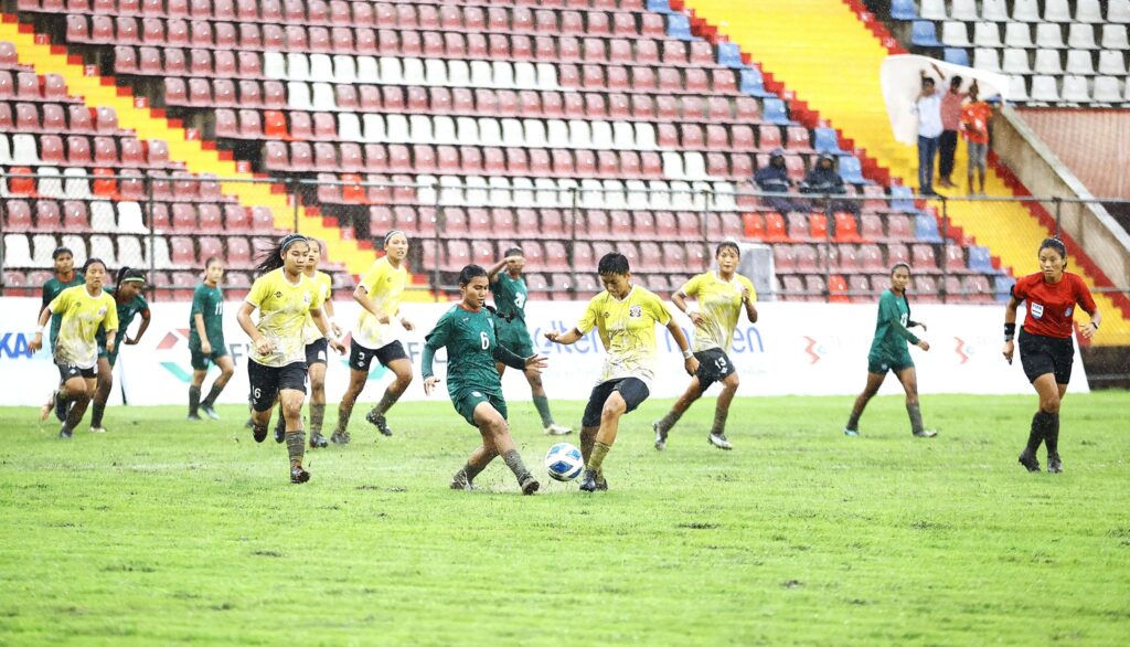 সাফ অনূর্ধ্ব-২০ নারী ফুটবল টুর্নামেন্টে বাংলাদেশের বিপক্ষে ভুটানের ম্যাচে ঘটেছে নজিরবিহীন ঘটনা। প্রথমার্ধ খেলা হয়েছে বসুন্ধরা কিংস অ্যারেনায়, আর দ্বিতীয়ার্ধ অনুষ্ঠিত হয়েছে পাশের অনুশীলন মাঠে। এমন ঘটনা বাংলাদেশের ফুটবল ইতিহাসে তো বটেই, আন্তর্জাতিক ফুটবলেও বিরল।