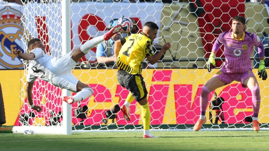 নাটকীয় এক জয়ে বিশ্ব ক্লাব কাপের সেমিফাইনালে উঠেছে রিয়াল মাদ্রিদ। টানটান উত্তেজনা পূর্ণ শেষ কোয়ার্টার ফাইনালে তারা বরুশিয়া ডর্টমুন্ডকে ৩-২ গোলে হারিয়েছে। গঞ্জালো গার্সিয়া, ফ্রান গার্সিয়া ও কিলিয়ান এমবাপ্পে রিয়াল মাদ্রিদের হয়ে গোল করেন। ম্যাক্সিমিলিয়ান বেইয়ার ও সেরু গুইরাসি বরুশিয়ার হয়ে ব্যবধান কমান।