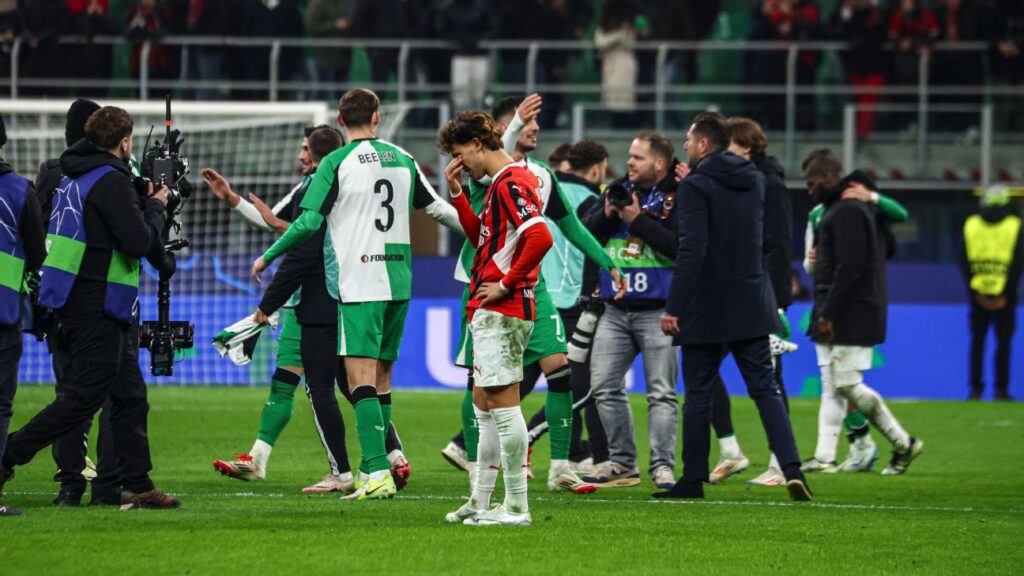 চ্যাম্পিয়ন্স লিগ থেকে ছিটকে গেল ইতালিয়ান ক্লাব এসি মিলান। মঙ্গলবার প্লে অফ লড়াইয়ে অ্যাওয়ে ম্যাচে ফেয়েনুর্ডের সঙ্গে ১-১ গোলে ড্র করে গোল গড়ে তারা বিদায় নিয়েছে। প্রথম লেগে ১-০ গোলে জয় পাওয়ায় ২-১ গোল গড়ে ফেয়েনুর্ড শেষ ষোলোতে পৌঁছে গেল।