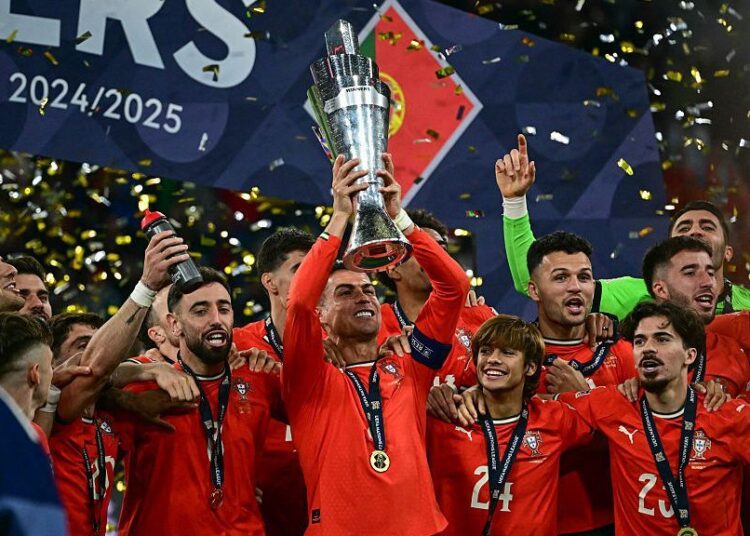 উয়েফা নেশনস লিগের ফাইনালে দুই দুইবার পিছিয়ে পড়েও হাল ছাড়েনি পর্তুগাল। দাপটের সঙ্গে খেলায় ফিরেছে, শুধু তাই নয়, শিরোপা নিয়ে মাঠ ছেড়েছে। গতকাল রোববার রাতে জার্মানির মিউনিখে অনুষ্ঠিত ফাইনাল ম্যাচে নির্ধারিত সময়ে খেলা ২-২ গোলে শেষ হওয়ার পর টাইব্রেকারে পর্তুগাল ৫-৩ গোলে হারায় স্পেনকে।