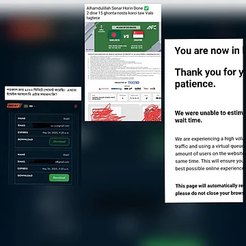 শনিবার রাত ৮টায় অনলাইনে টিকিট বিক্রি শুরুর কথা থাকলেও ‘টিকিফাই’ ওয়েবসাইট সাইবার হামলার শিকার হয় বলে দাবি বাফুফের। এরপর রাত ১১টার দিকে সীমিত আকারে বিক্রি শুরু হয়। সেখানেই তৈরি হয় অনলাইন বিভ্রাটের মহাযজ্ঞ। কারও পর্দায় ‘503 Service Temporarily Unavailable’, আবার কারও সামনে ভেসে ওঠে ৩ থেকে ৫ ঘণ্টার ভার্চুয়াল লাইনের অপেক্ষা।