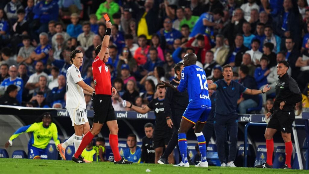 দুর্ভাগ্য গেতাফের। রিয়ালের কাছ থেকে পয়েন্ট কেড়ে নেওয়ার সব আয়োজনই তারা করেছিল। অন্যদিকে রিয়াল মাদ্রিদ পয়েন্ট হারানোর শঙ্কায় উদ্বিগ্ন হয়ে পড়েছিল। কিন্তু লাল কার্ড, লাল কার্ড রিয়াল মাদ্রিদকে উদ্ধার করেছে। দু দুটো লাল কার্ড দেখেছে গেতাফে। একটা ৭৭ মিনিটে অন্যটা ৮৪ মিনিটে। প্রথমটি দেখেন অ্যালন নিয়ম। আর দ্বিতীয়টি অ্যালেক্স সানক্রিস। দুই লাল কার্ডের মাঝেই রিয়াল মাদ্রিদ তাদের কাঙ্খিত গোল আদায় করে নেয়। নিয়মের লাল কার্ড দেখার কয়েক সেকেন্ড পরই গোল পায় মাদ্রিদ। ২০২৫ সালে ক্লাব ও দেশের হয়ে এমবাপ্পের এটি ছিল ৫০তম গোল।
