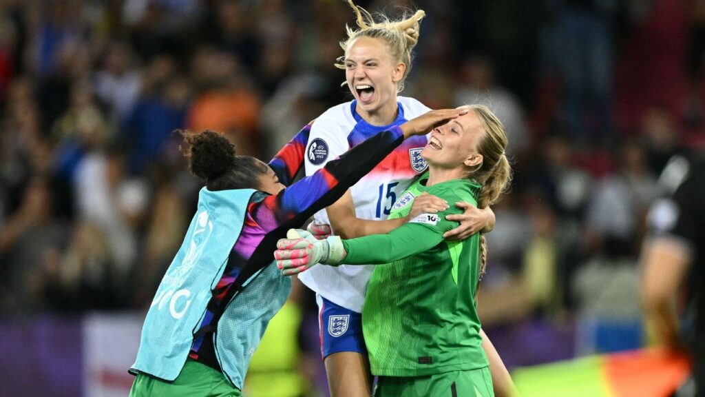নারী ইউরোপীয়ান চ্যাম্পিয়নশিপে নাটকীয় জয়ে সেমিফাইনালে পৌঁছেছে বর্তমান চ্যাম্পিয়ন ইংল্যান্ড। বৃহষ্পতিবার রাতে অনুষ্ঠিত কোয়ার্টার ফাইনালে তারা সুইডেনকে টাইব্রেকারে ৩-২ গোলে হারিয়েছে। নির্ধারিত সময়ের খেলা ২-২ গোলে অমীমাংসিত ছিল।