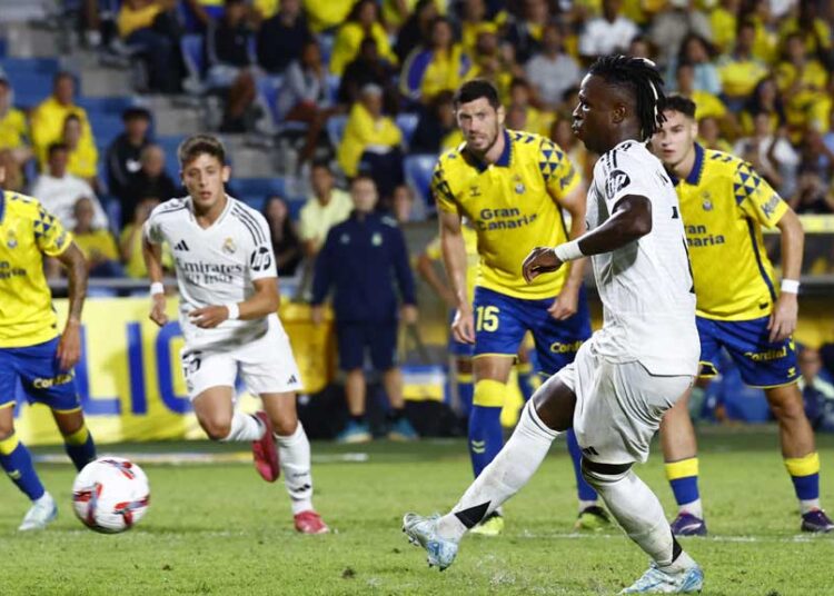 স্প্যানিশ ফুটবলে আবারও পয়েণ্ট হারাল রিয়াল মাদ্রিদ। বৃহস্পদিবার রাতে পালমাসের মাঠে লা লিগার ম্যাচটি ১-১ ড্র হয়েছে। ম্যাচের শুরুতে আলবের্তো মোলেইরোর গোলে স্বাগতিকরা এগিয়ে যাওয়ার পর দ্বিতীয়ার্ধে পেনাল্টি থেকে সমতা টানেন ভিনিসিউস জুনিয়র।
