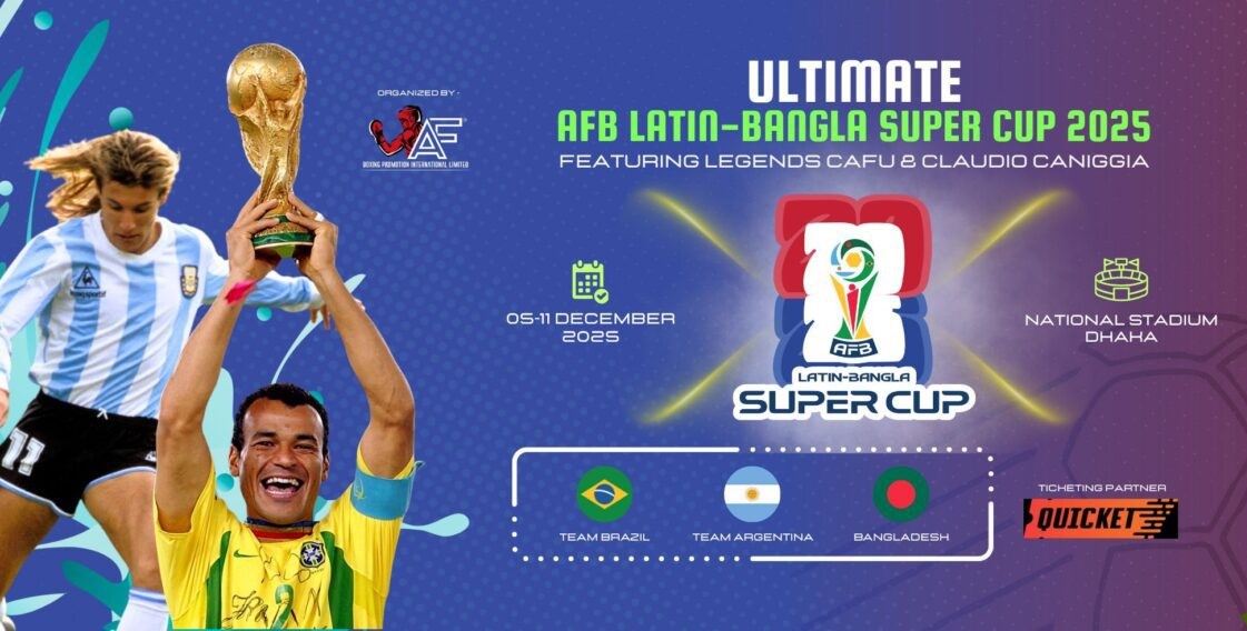ঢাকার আকাশে যেন একটু আগেই নেমে এসেছে লাতিন আমেরিকার উচ্ছ্বাস। লাতিন বাংলা সুপার কাপে অংশ নিতে বুধবার সকালে ঢাকায় পৌঁছেছে আর্জেন্টিনার অ্যাথলেটিকো চার্লোন। এর একদিন আগে এসেছে ব্রাজিলের সাও বার্নার্দো। দু’টি লাতিন দল আর স্বাগতিক ফিউচার স্টার বাংলাদেশকে নিয়ে জাতীয় স্টেডিয়ামে জমে উঠছে তরুণদের রোমাঞ্চকর আন্তর্জাতিক ফুটবল আসর।