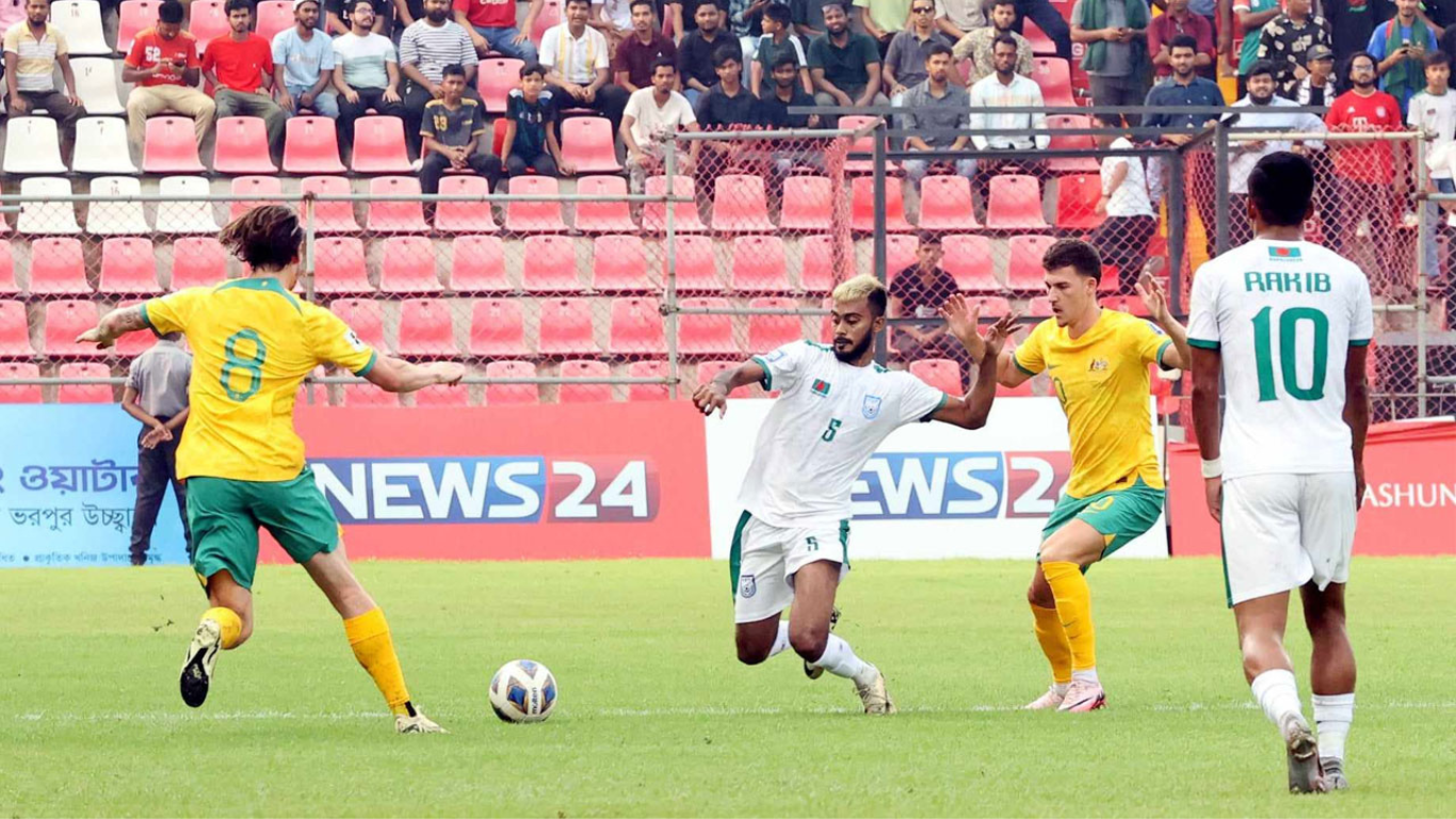 বিশ্বকাপ ও এশিয়ান কাপ যৌথ বাছাইয়ে নিজেদের শেষ হোম ম্যাচে আজ অস্ট্রেলিয়ার মুখোমুখি হয়েছে বাংলাদেশ। বসুন্ধরা কিংস অ্যারেনায় অস্ট্রেলিয়ার বিপক্ষে দুর্দান্ত ফুটবল খেলেছে জামাল ভূঁইয়ার দল। বিশ্বকাপ খেলা অস্ট্রেলিয়া ম্যাচের প্রথমার্ধে স্বাগতিকদের চেয়ে মাত্র ১-০ গোলে এগিয়ে ছিলো। সেটাও আবার বাংলাদেশের আত্মঘাতী গোলে। শেষ পর্যন্ত মাত্র দুই গোলে হেরেছে লাল-সবুজের প্রতিনিধিরা।