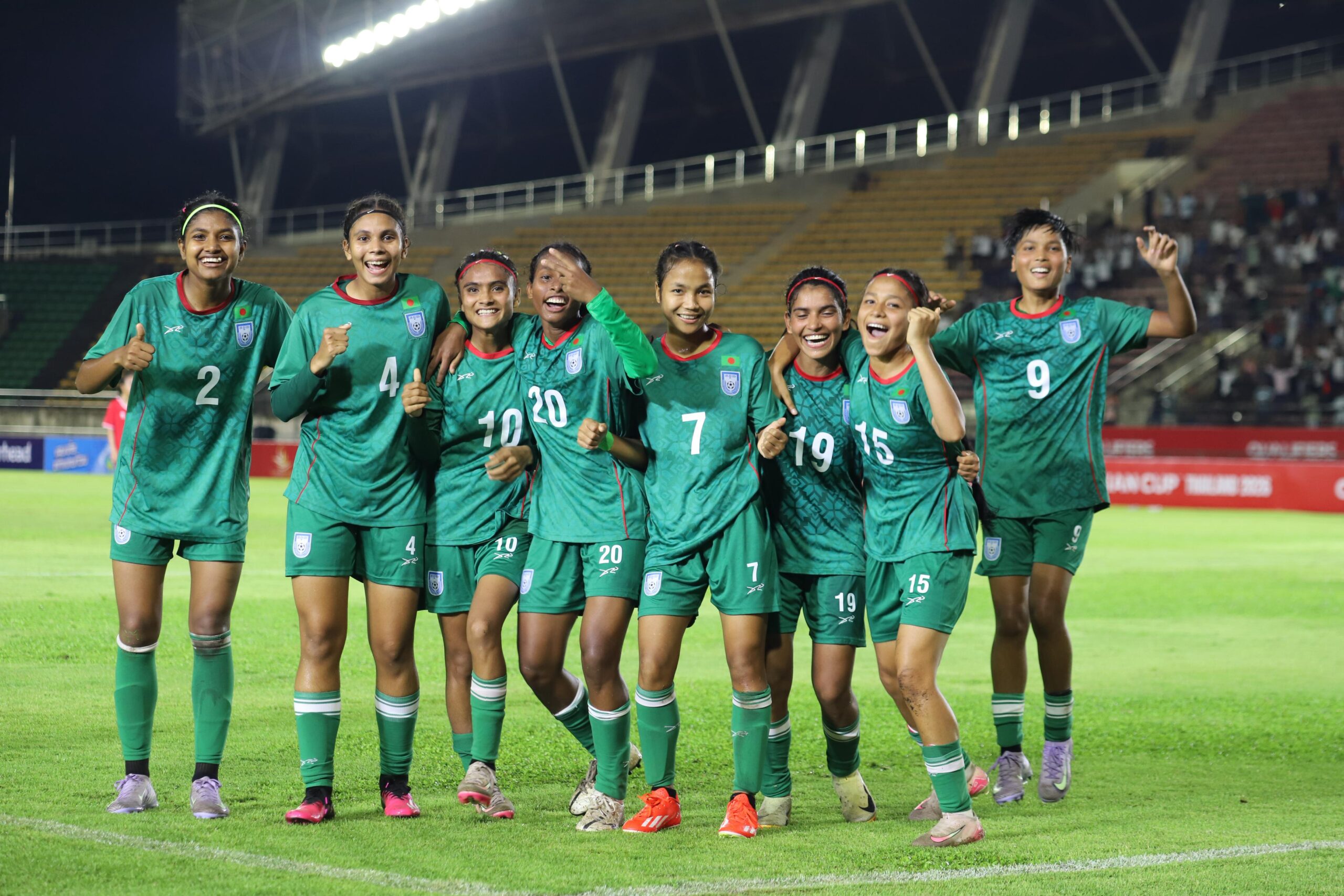 এএফসি অনূর্ধ্ব-২০ নারী এশিয়ান কাপ বাছাইয়ে দুরন্ত সূচনা করলো বাংলাদেশ। স্ট্রাইকের সাগরিকার জোড়া ও মিডফিল্ডার মুনকি আক্তারের এক গোলের সুবাদে ফিফা নারী ফুটবলের র্যাঙ্কিয়ে ২১ ধাপে এগিয়ে থাকা লাওসকে ৩-১ গোলে হারিয়েছে আফঈদা খন্দকারের দল।
