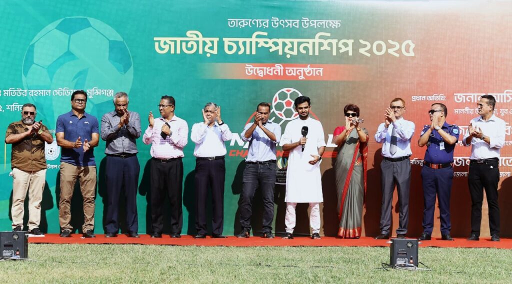 মাঠে গড়ালো ৬৪ জেলা দল নিয়ে “জাতীয় চ্যাম্পিয়নশিপ ২০২৫” ফুটবল টুর্নামেন্ট। আজ বীরশ্রেষ্ঠ ফ্লাইট লেফটেন্যান্ট মতিউর রহমান স্টেডিয়াম, মুন্সিগঞ্জে জাতীয় চ্যাম্পিয়নশিপের উদ্বোধন করেন যুব ও ক্রীড়া মন্ত্রণালয়ের উপদেষ্টা আসিফ মাহমুদ সজীব ভূঁইয়া।
