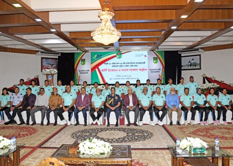 অনূর্ধ্ব-১৮ এশিয়া কাপ হকিতে অংশ নিতে আগামী ৩০ জুন চীনের ডাজহুর উদ্দেশ্যে দেশ ছাড়বে বাংলাদেশ নারী ও পুরুষ হকি দল। সে লক্ষ্যে আনুষ্ঠানিকভাবে জার্সি উন্মোচন করলেন বাংলাদেশ হকি ফেডারেশনের ফেডারেশন সভাপতি ও বাংলাদেশ বিমান বাহিনী প্রধান এয়ার চিফ মার্শাল হাসান মাহমুদ খাঁন।