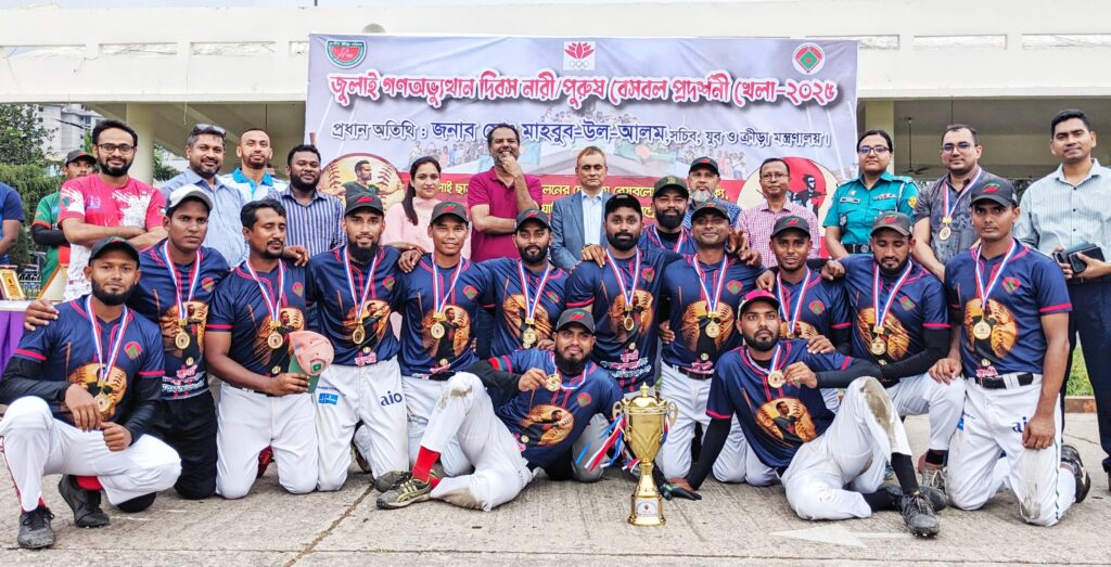 ​জুলাই গণঅভ্যুত্থান দিবসের স্মরণে বাংলাদেশ বেসবল-সফটবল অ্যাসোসিয়েশনের আয়োজনে একটি বিশেষ বেসবল প্রদর্শনী খেলা অনুষ্ঠিত হয়েছে। রাজারবাগ পুলিশ লাইন মাঠে অনুষ্ঠিত এই আয়োজনে বাংলাদেশ পুলিশ এবং বাংলাদেশ আনসার নারী ও পুরুষ দল অংশগ্রহণ করে।