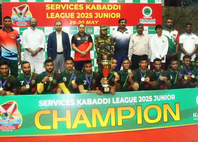 সার্ভিসেস কাবাডি লিগে (জুনিয়র) অপরাজিত চ্যাম্পিয়ন হয়েছে বাংলাদেশ সেনাবাহিনী। ফাইনালে তারা বাংলাদেশ পুলিশকে ৪১-২৫ পয়েন্টের ব্যবধানে হারিয়েছে।