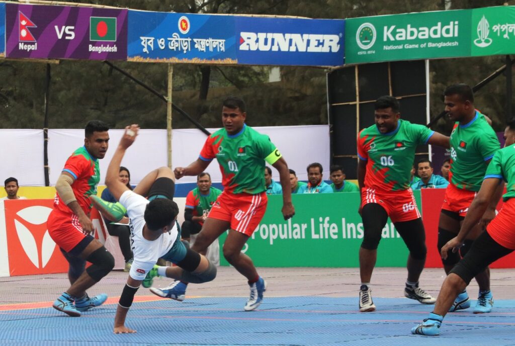বড় জয় দিয়ে ঐতিহাসিক মুহূর্তকে স্মরণীয় করে রাখল বাংলাদেশ জাতীয় কাবাডি দল। পাঁচ ম্যাচের সিরিজের প্রথম ম্যাচে নেপালকে ২৪ পয়েন্টের ব্যবধানে হারিয়েছে লাল সবুজের প্রতিনিধিরা। পাঁচটি লোনাসহ ৫৩-২৯ পয়েন্টে নেপালকে হারিয়ে সিরিজে ১-০ ব্যবধানে এগিয়ে গেল বাংলাদেশ।