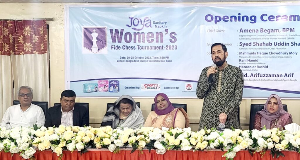 শুক্রবার বিকালে বাংলাদেশ পুলিশের বিশেষ শাখার ডিআইজি (প্রটেকশন এন্ড প্রটোকল) আমেনা বেগম, বিপিএম প্রধান অতিথি হিসেবে উপস্থিত থেকে এ প্রতিযোগিতার উদ্বোধন করেন। অনুষ্ঠানে গেস্ট অব অনার হিসেবে উপস্থিত ছিলেন বাংলাদেশ দাবা ফেডারেশনের সাধারণ সম্পাদক সৈয়দ শাহাব উদ্দিন শামীম। বিশেষ অতিথি হিসেবে উপস্থিত ছিলেন আন্তর্জাতিক মহিলা মাস্টার রানী হামিদ, বাংলাদেশ দাবা ফেডারেশনের কার্যনির্বাহী সদস্য আন্তর্জাতিক অর্গানাইজার মাহমুদা হক চৌধুরীর মলি ও আন্তর্জাতিক দাবা বিচারক মোঃ হারুন অর রশিদ। অনুষ্ঠানে সভাপতিত্ব করেন স্পোর্টস বাংলার সভাপতি মোঃ আরিফুজ্জামান আরিফ। উদ্বোধনী অনুষ্ঠানে পরপরই প্রতিযোগিতার খেলা শুরু হয়।