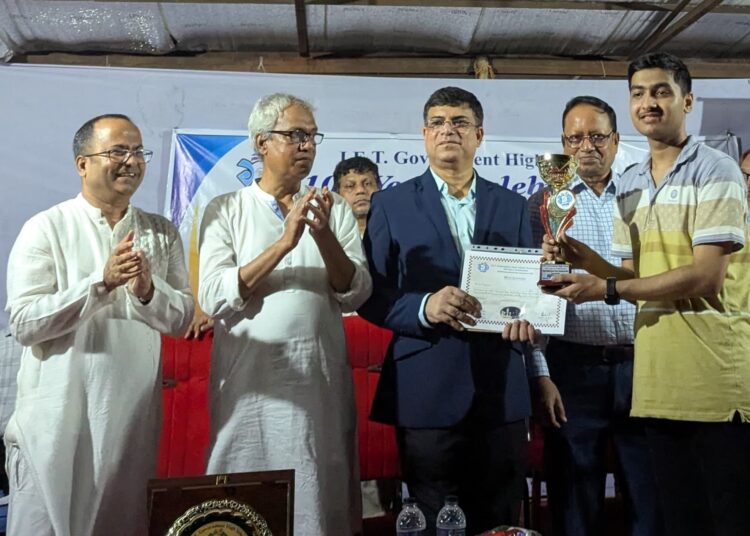 শতবর্ষ উদযাপন কমিটির আহবায়ক মর্তুজা শরিফুল ইসলামের সভাপতিত্বে অনুষ্ঠানের প্রধান অতিথি বাংলাদেশ পুলিশের ডিআইজি ও বাংলাদেশ দাবা ফেডারেশনের সহসভাপতি ড. শোয়েব রিয়াজ আলম বিজয়ীদের হাতে ট্রফি, অর্থ পুরস্কার ও সার্টিফিকেট তুলে দেন।