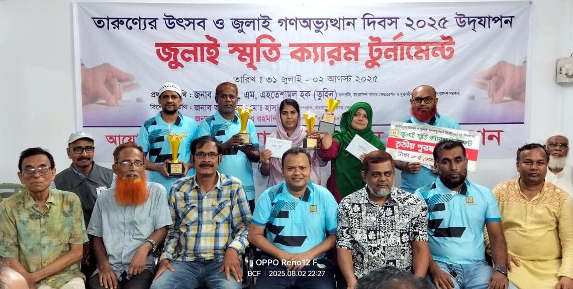 তারুণ্যের উৎসব ও জুলাই গণঅভ্যুত্থান দিবস ২০২৫ উদযাপনের লক্ষ্যে ‘জুলাই স্মৃতি ক্যারম টুর্নামেন্টের আয়োজন করেছিলো বাংলাদেশ ক্যারম ফেডারেশন। তিনদিনের এই টুর্নামেন্টে পুরুষ ও নারী এককে চ্যাম্পিয়ন হয়েছেন মো. আলী রবিন ও আফসানা নাসরিন।