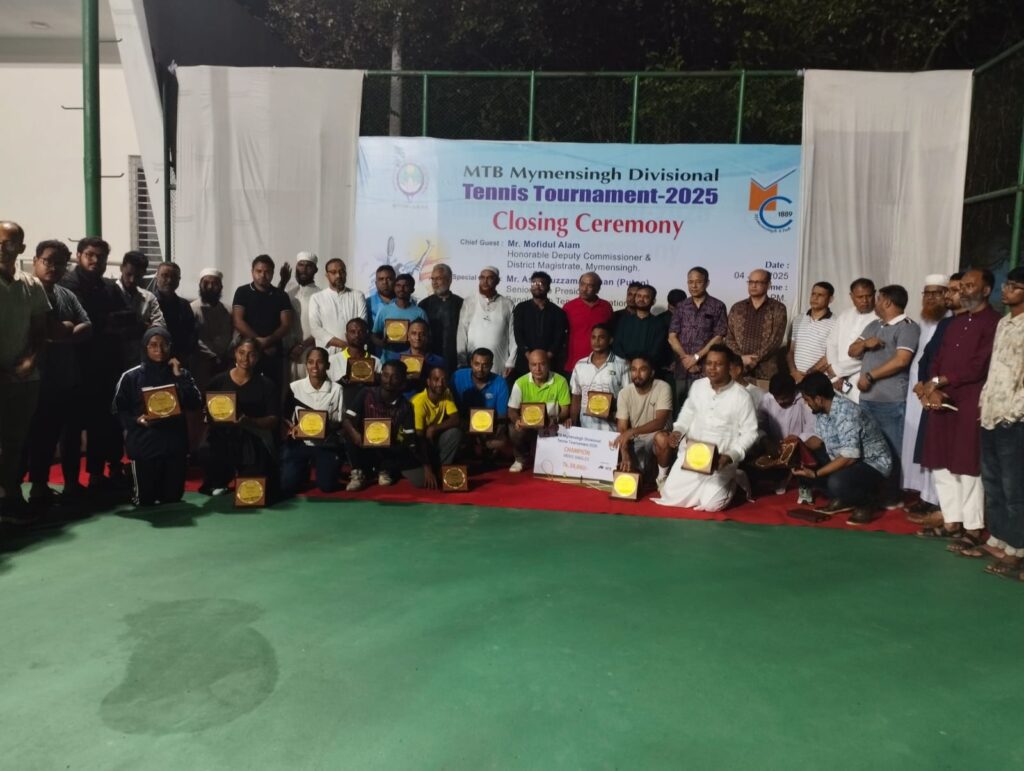বাংলাদেশ টেনিস ফেডারেশন ও জেলা প্রশাসন ময়মনসিংহের ব্যবস্থাপনায় মিউচুয়াল ট্রাস্ট ব্যাংক পিএলসি এর পৃষ্ঠপোষকতায় জাতীয় টেনিস কমপ্লেক্স, রমনা ও ময়মনসিংহ ক্লাব, ময়মনসিংহে ২৭ জুন ২০২৫ হতে ০৪ জুলাই ২০২৫ পর্যন্ত আয়োজিত ‘এমটিবি ময়মনসিংহ বিভাগীয় টেনিস প্রতিযোগিতা ২০২৫’ এর ফাইনাল খেলাসমূহ ০৪ জুলাই ২০২৫ ময়মনসিংহ ক্লাব, ময়মনসিংহে অনুষ্ঠিত হয়েছে।