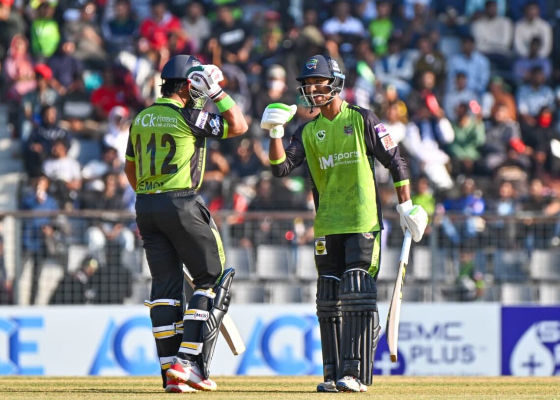 এরপর লিটন দাস ও ইফতিখার আহমেদ ২১ রানের জুটি করেন। ভালো শুরুর পর লিটন বিদায় নেন ২২ রানে। দলীয় ৬৭ রানে ১৭ রান করে আউট ইফতিখার। টপঅর্ডারের চার ব্যাটারকে হারানোর পর খুশদিল শাহ দলের পক্ষে সর্বোচ্চ ৩০ রান করে বিদায় নেন।