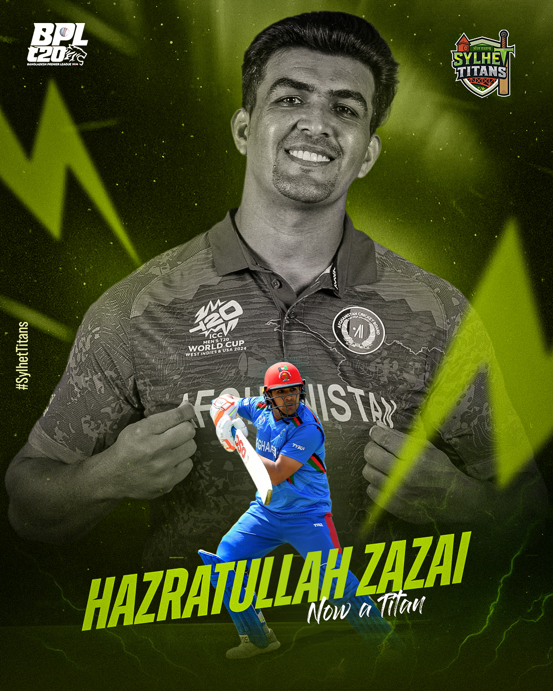 আফগানিস্তানের টপঅর্ডার ব্যাটার হযরতউল্লাহ জাজাইকে দলে ভিড়িয়েছে সিলেট টাইটান্স। আসন্ন বাংলাদেশ প্রিমিয়ার লিগের (বিপিএল) জন্য তাকে সরাসরি চুক্তিতে নেওয়ার কথা জানিয়েছে ফ্র্যাঞ্চাইজিটি। বুধবার সন্ধ্যায় এক সংবাদ বিজ্ঞপ্তিতে সিলেট টাইটান্স তা নিশ্চিত করে।