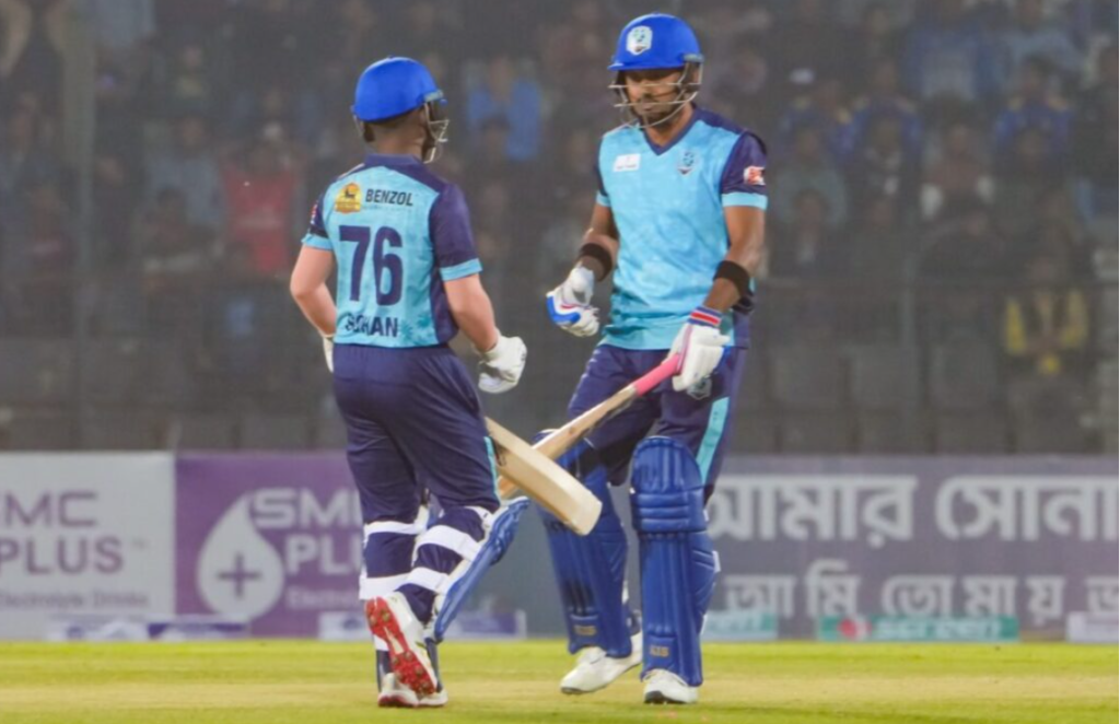 সিলেট টাইটান্সের পেসার সৈয়দ খালেদ আহমেদ ৪ ওভারে ১ মেডেন দিয়ে ২৩ রানে ৪ উইকেট নেন। এরপর সিলেটও জবাব দিতে নেমে ৩৪ রানে ৩ উইকেট হারিয়ে চাপে পড়ে।
