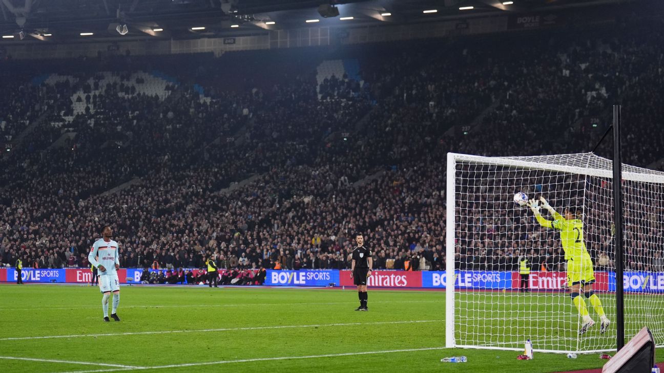 ব্রেন্টফোর্ডের সঙ্গে ড্র’র পর টাইব্রেকারের জয় নিয়ে এফএ কাপের কোয়ার্টার ফাইনালে পৌঁছেছে ওয়েস্ট হাম ইউনাইটেড। ৫-৩ গোলে জয় ওয়েস্ট হাম ইউনাইটেডের। নির্ধারিত সময়ের খেলা ২-২ গোলে অমীমাংসিত ছিল।