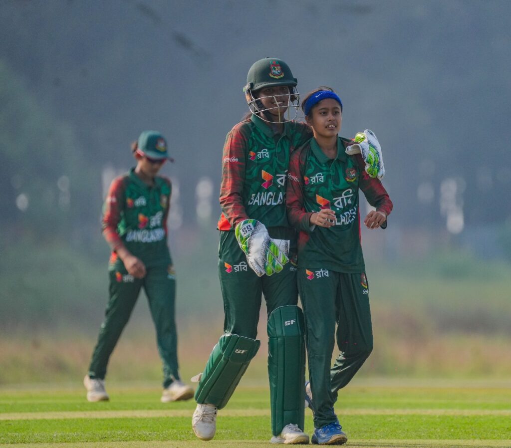 দলকে বিপর্যয় থেকে বাঁচাতে একাই লড়ে যান আরিত্রী নির্জনা মণ্ডল। কিন্তু তিনিও শেষ পর্যন্ত টিকতে পারেননি। ৩৮ বলে ২০ রানে সাজঘরে ফিরেছেন অরিত্রী। এরপর সাদিয়া আক্তার ২০ বলে ১৬ এবং ববি খাতুন ১৮ বলে ১৩ রান করলেও তা জয়ের জন্য যথেষ্ট ছিল না।