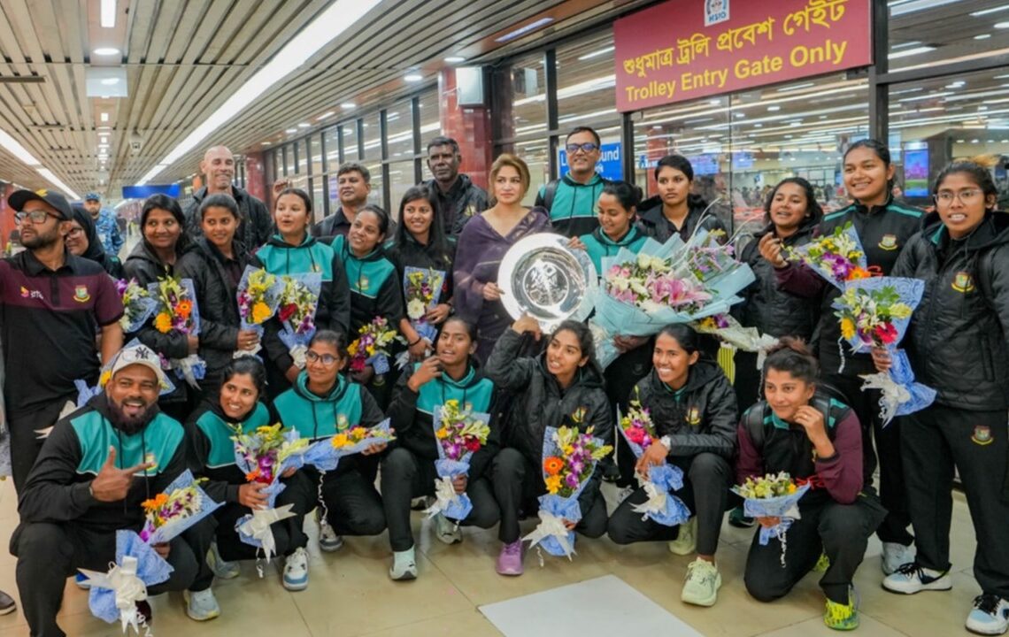 গত রবিবার শেষ ম্যাচে নেদারল্যান্ডসকে ৭ উইকেটের বড় ব্যবধানে হারিয়ে চ্যাম্পিয়ন হয় নিগার সুলতানার দল। তারপর দেশে ফিরেছে নারী দল। তারা দেশের মাটিতে পা রাখলে ক্রিকেটারদের ফুল দিয়ে শুভেচ্ছা জানান বিসিবি’র নারী বিভাগের চেয়ারম্যান রুবাবা দৌলা। সেখানে তাদের মিষ্টি মুখ করার তিনি।