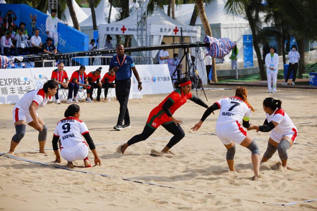 চীনের সানিয়া শহরে অনুষ্ঠিত এশিয়ান বিচ গেমস কাবাডি প্রতিযোগিতায় বাংলাদেশ ও নেপাল নারী দল আগেই সেমিফাইনাল নিশ্চিত করেছিল। ফলে আজ (রোববার) সকালে অনুষ্ঠিত তাদের মধ্যকার ম্যাচটি ছিল মূলত গ্রুপ সেরা হওয়ার লড়াই, যার মাধ্যমে শক্তিশালী ভারত দলকে সেমিফাইনালে এড়ানোর সুযোগ ছিল। কিন্তু দারুণ প্রতিদ্বন্দ্বিতাপূর্ণ সেই ম্যাচে শেষ পর্যন্ত নেপালের কাছে ৩৬-৩৮ পয়েন্টের ব্যবধানে হেরেছে বাংলাদেশ।