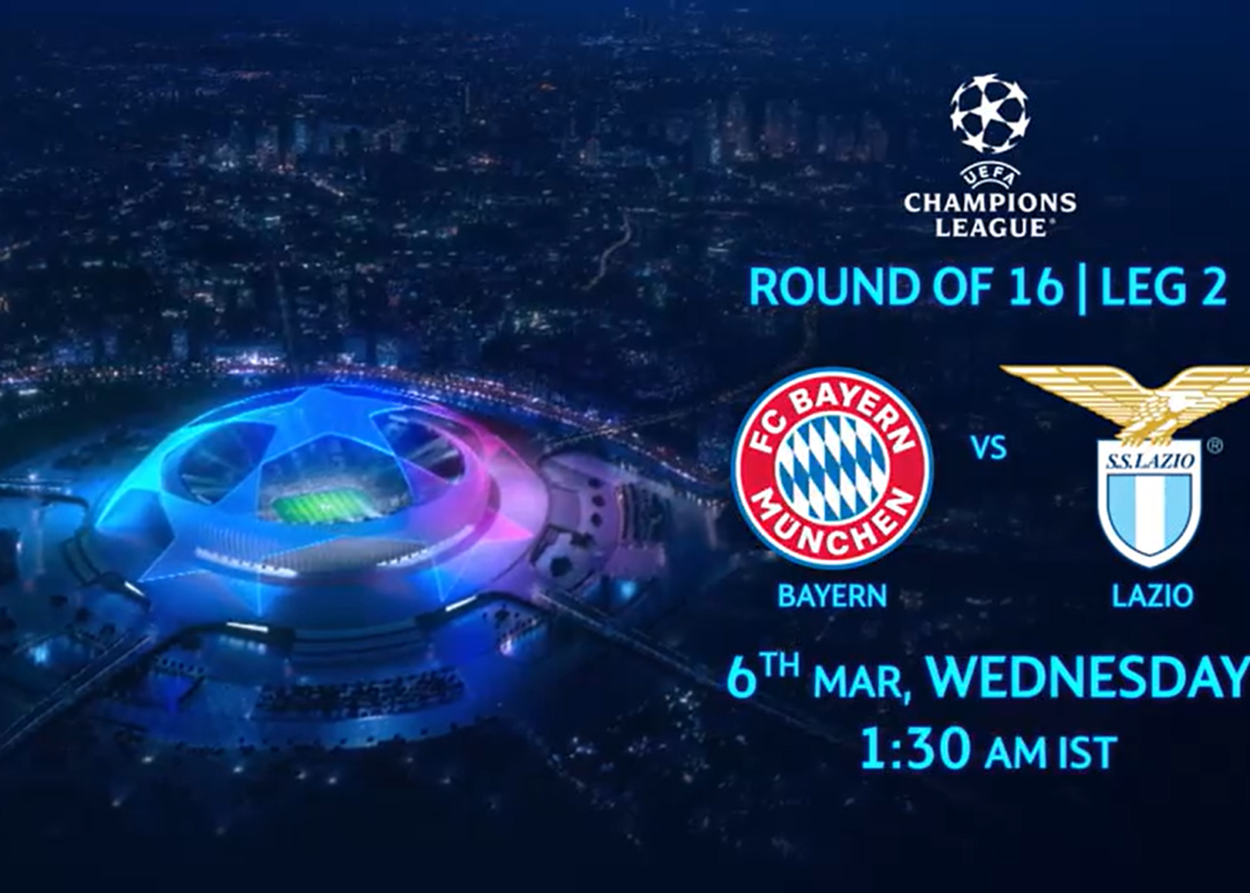 চ্যাম্পিয়নস লিগের শেষ ষোলোর দ্বিতীয় লেগে আজ মুখোমুখি বায়ার্ন মিউনিখ ও লাৎসিও। প্রথম লেগটা ১–০ গোলে জিতেছে লাৎসিও।